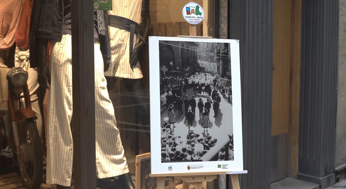 Cuando apenas quedan tres semanas para que arranquen las fiestas de San Fermín, las calles del Casco Antiguo de Pamplona se han convertido estos días en un museo al aire libre, mostrando a la ciudadanía imágenes de Sanfermines pasados, de momentos de la fiesta, de lugares emblemáticos y de ambiente festivo. El Ayuntamiento de Pamplona, el Archivo Municipal y la Asociación de Comercio, Hostelería y Servicios del Casco Antiguo de Pamplona han colaborado en esta iniciativa, que podrá disfrutarse hasta el próximo 3 de julio a las puertas de los comercios del centro de la ciudad. 'Momentos de San Fermín' es el nombre que recibe esta exposición fotográfica al aire libre.