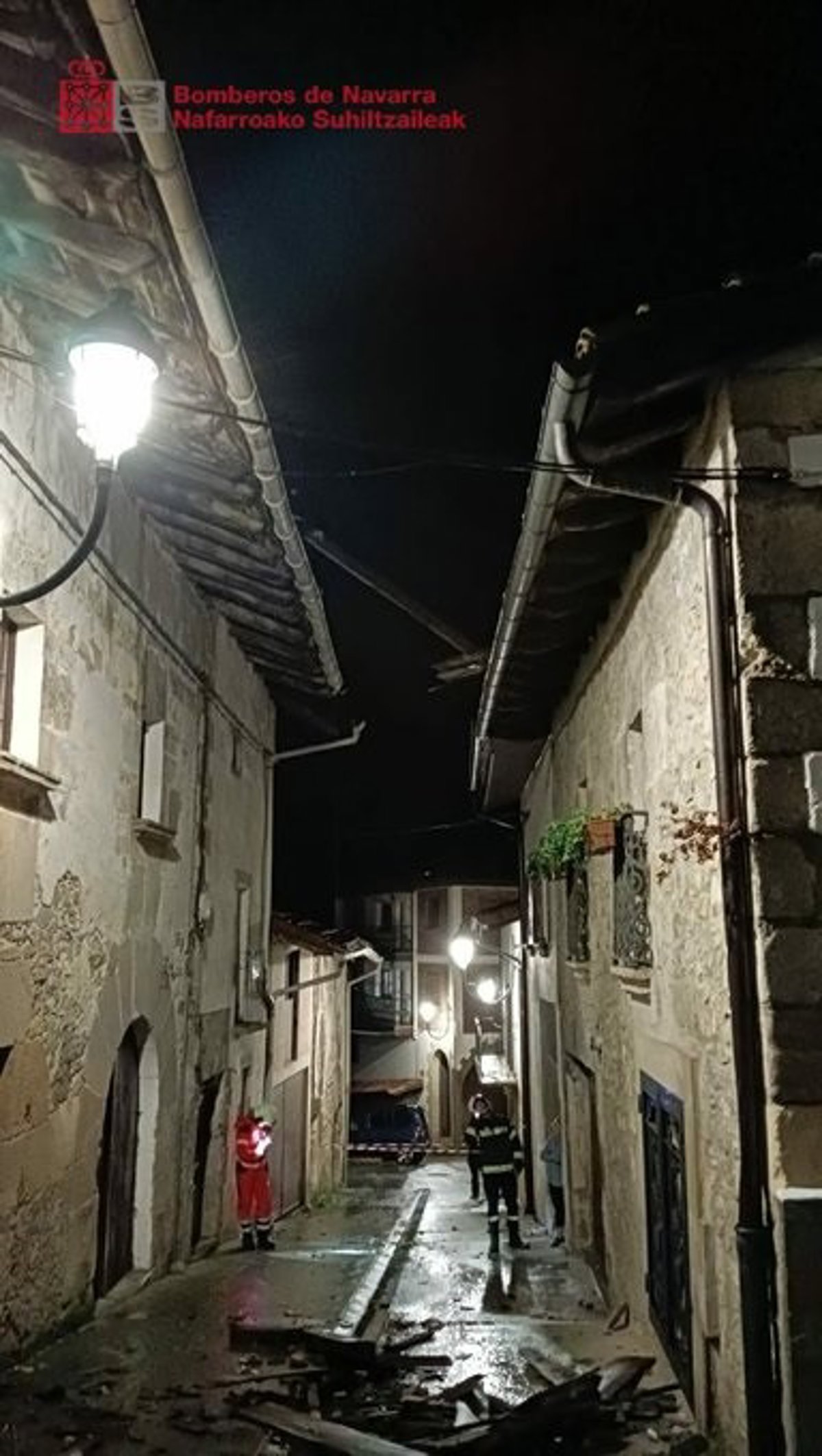 Al lugar acudieron efectivos de Bomberos del parque de Alsasua, para sanear la vivienda. Desescombraron el tejado y señalizaron la zona, cerrando el paso, según ha informado el servicio de Bomberos en la red social X.