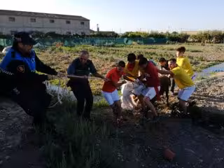 Sobre las 9.00 después del seguimiento del animal hasta el término de Arguedas (Navarra) se ha conseguido capturar al animal entre varios jóvenes de la localidad así como los agentes de la Guardia Civil y la policía local.