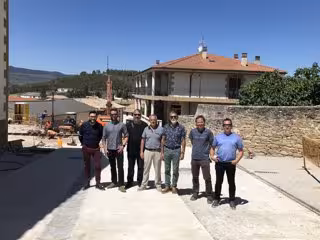De izquierda a derecha, el director general de Administración Local y Despoblación, Jesús Mari Rodríguez, el alcalde de Aibar, Aritz Burguete, acompañados por miembros de la corporación municipal y técnicos responsables de la obra - GOBIERNO DE NAVARRA