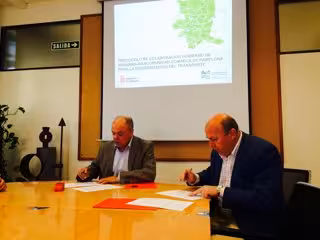 El consejero de Fomento en funciones del Gobierno de Navarra, Luis Zarraluqui, y el presidente de la Mancomunidad de la Comarca de Pamplona, José Muñoz, han firmado un protocolo para el desarrollo del Plan Integral de Transporte Público Interurbano de Viajeros de la Comunidad Foral, en el que se destaca que ambas instituciones trabajarán conjuntamente para la implantación de la tarjeta única de transporte, válida tanto para transporte urbano como interurbano.