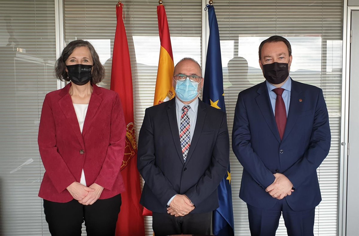La directora general de Universidad, Ana Burusco; el consejero de Universidad, Innovación y Transformación Digital, Juan Cruz Cigudosa; y el rector de la Universidad Pública de Navarra, Ramón Gonzalo. - GOBIERNO DE NAVARRA