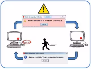 El sistema se instala en los ordenadores del personal que se considera puede ser susceptible de sufrir estas situaciones y permite, en primera instancia, que la persona en riesgo solicite ayuda a compañeros que trabajan en el mismo centro, pasando desapercibida la petición ante otras personas.