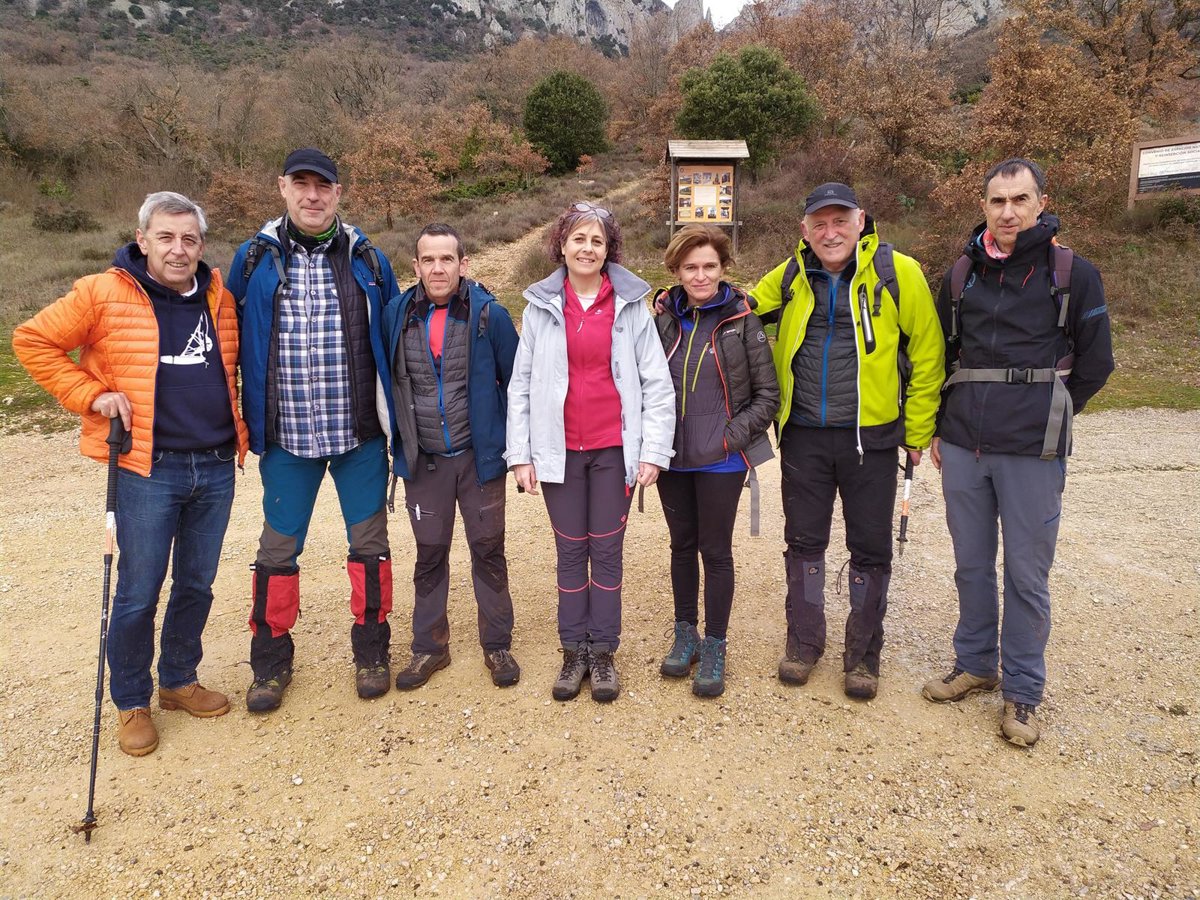 La consejera de Cultura y Deporte, Rebeca Esnaola, acompañada por una representación de la Comisión de Senderos de la FNDME, encabezada por Pablo Olorón y Iosu Tximeno, ha visitado precisamente un tramo del GR1 a su paso por la localidad de Torralba del Río, en el tramo entre Otiñano y Codés.