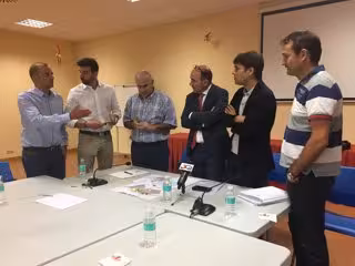 El vicepresidente Manu Ayerdi y el director gerente de Nasuvinsa, José Mª Aierdi, han mantenido este martes en la Casa de Cultura de Lodosa un encuentro con el alcalde, Pablo Azcona, varios concejales del Ayuntamiento y agentes empresariales locales, en el que han expuesto los detalles técnicos del plan elaborado y puesto en marcha por la sociedad pública de suelo y urbanismo.