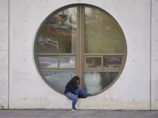 Archivo - Una estudiante consulta su móvil junto a una ventana de la UPNA. - Eduardo Sanz - Europa Press - Archivo