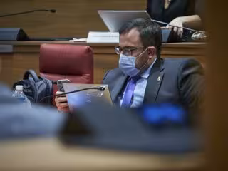 El vicepresidente primero del Gobierno de Navarra, Javier Remírez, en el pleno del Parlamento de Navarra el 8 de octubre de 2020. - EDUARDO SANZ-EUROPA PRESS