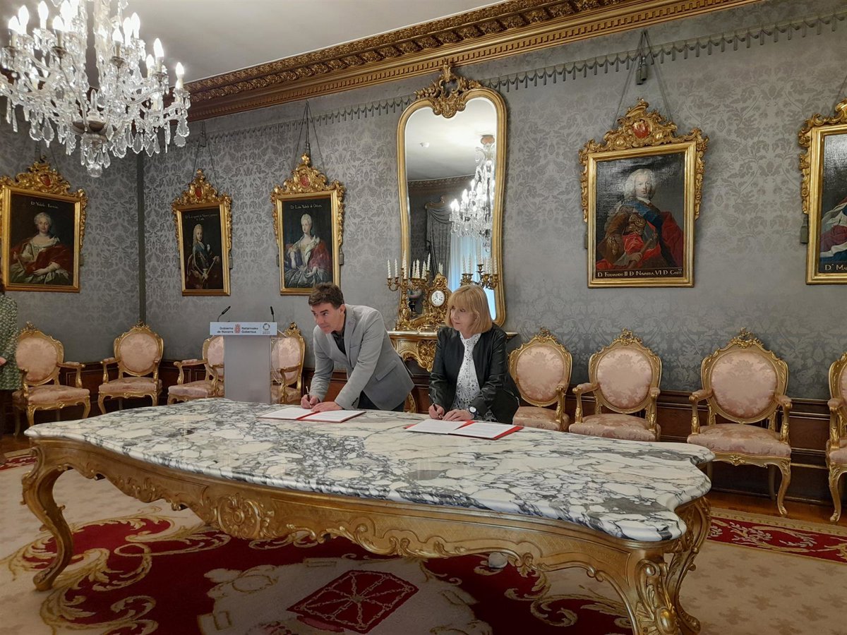 El convenio ha sido firmado este viernes por el consejero de Políticas Migratorias y Justicia del Ejecutivo foral, Eduardo Santos, y la representante de la asociación Clara Equiza.