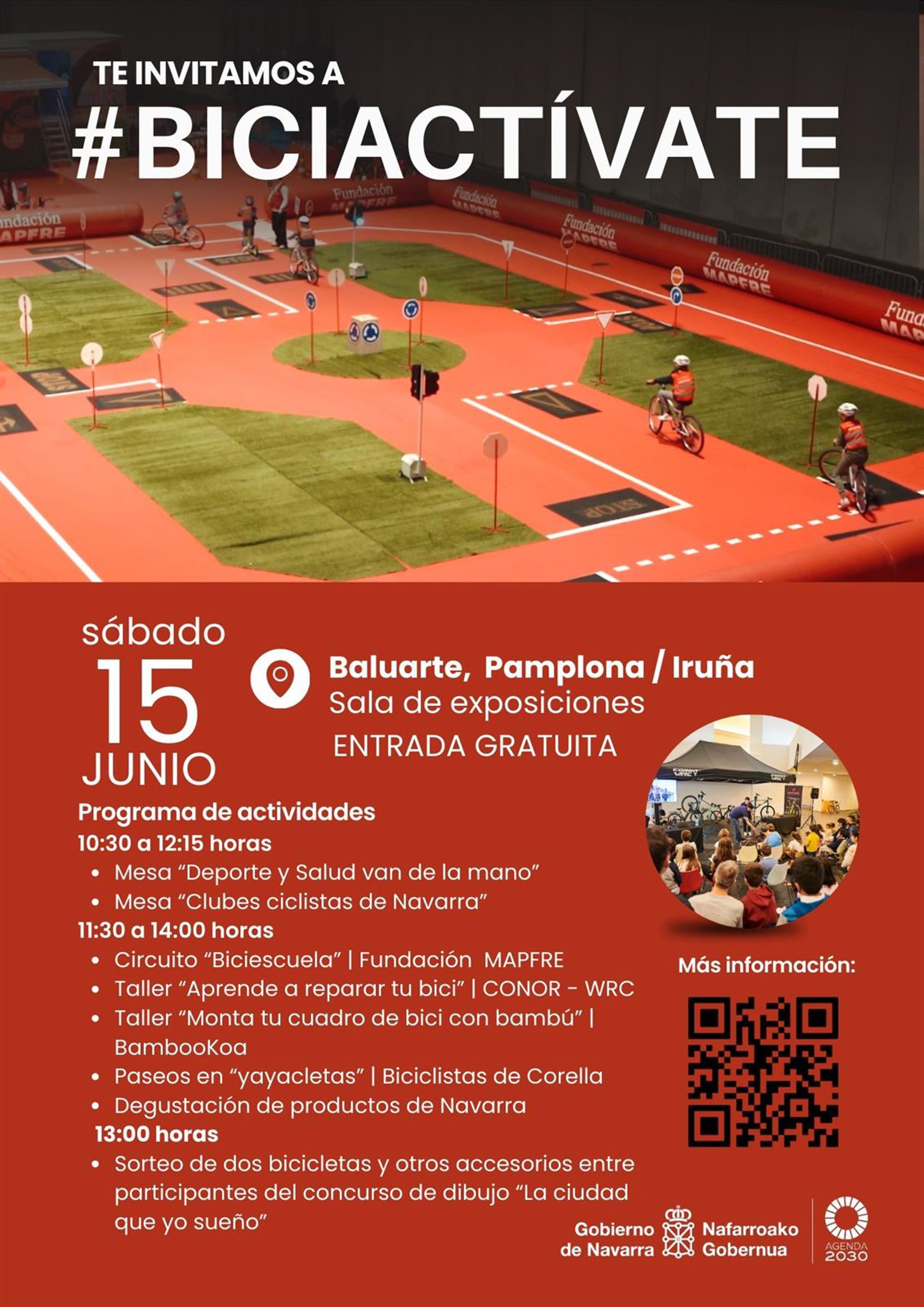 El Gobierno de Navarra invita a participar el próximo sábado, 15 de junio, en el Palacio de Congresos y Auditorio de Navarra-Baluarte, en Pamplona en la jornada de movilidad 'Biciactívate', con el objeto de fomentar la movilidad sostenible entre la infancia.