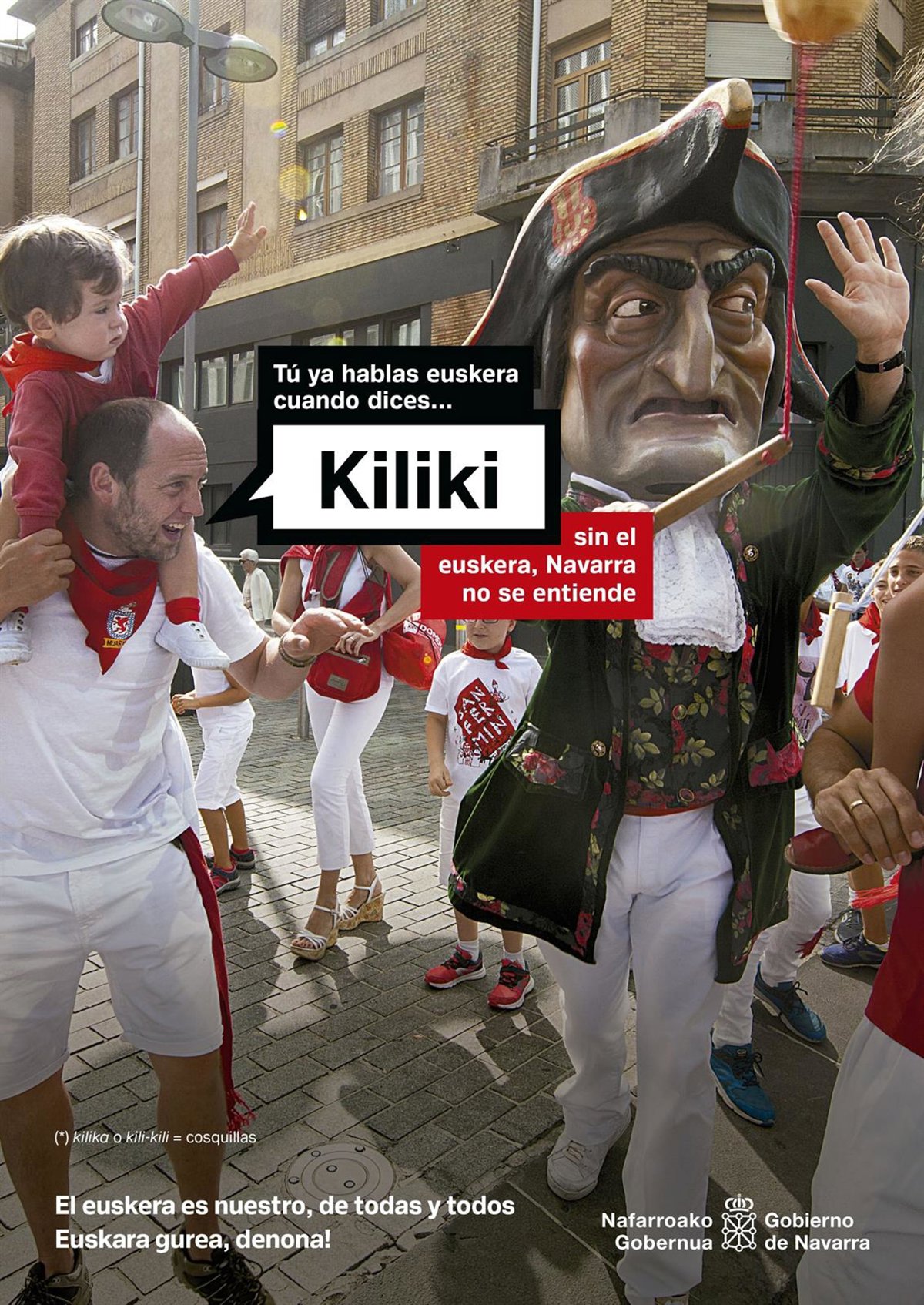 La campaña se desarrollará durante la segunda quincena de noviembre y primeros días de diciembre. Lleva por lema 'Sin el euskera, Navarra no se entiende' y 'Euskara gurea, denona', y en ella se resalta el empleo habitual por parte de la ciudadanía castellanohablante de palabras, expresiones y denominaciones en euskera, como Osasuna (salud), kiliki (cosquilla), txistorra (longaniza) o Landazuria (campo blanco), esta última en referencia a un paraje situado en las cercanías de la ermita de la Virgen del Yugo, en Arguedas, ha informado el Gobierno foral en una nota.