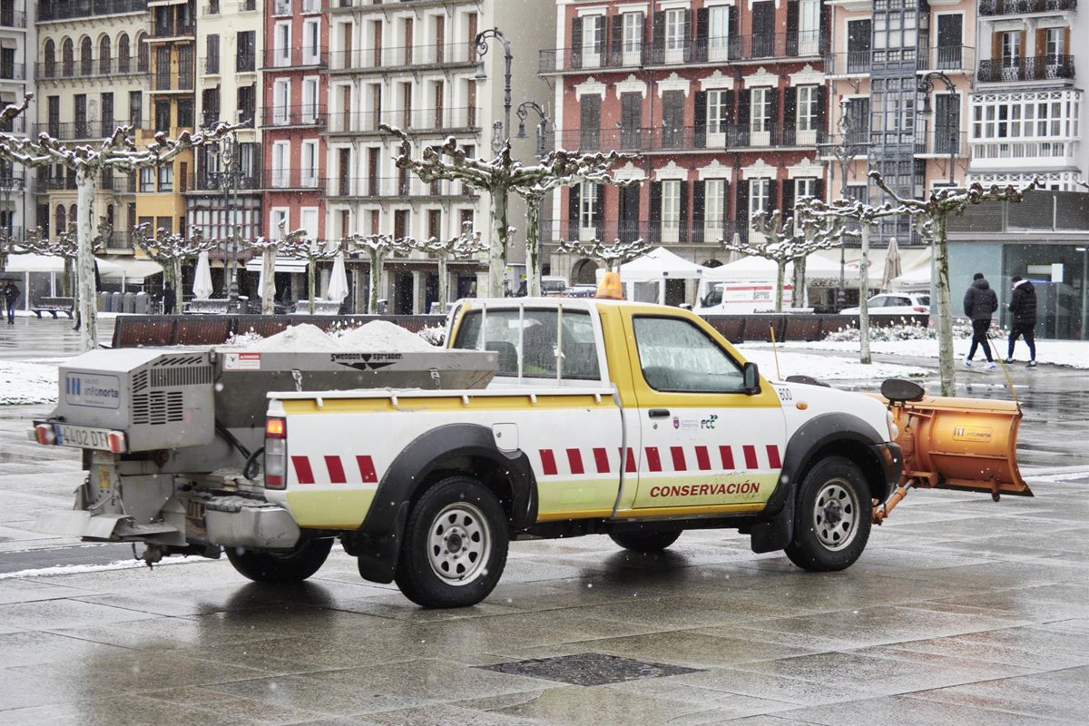 Un vehículo quitanieves del Centro de Conservación de Carreteras, este viernes en la Plaza del Castillo - Eduardo Sanz - Europa Press