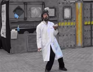 Junto a la máquina, un actor ataviado con indumentaria que lo identificaba como personal sanitario, captaba al público que transitaba por los alrededores y le sugería la posibilidad de probar los beneficios de este "novedoso" y "revolucionario" aparato que "sirve para prevenir enfermedades".