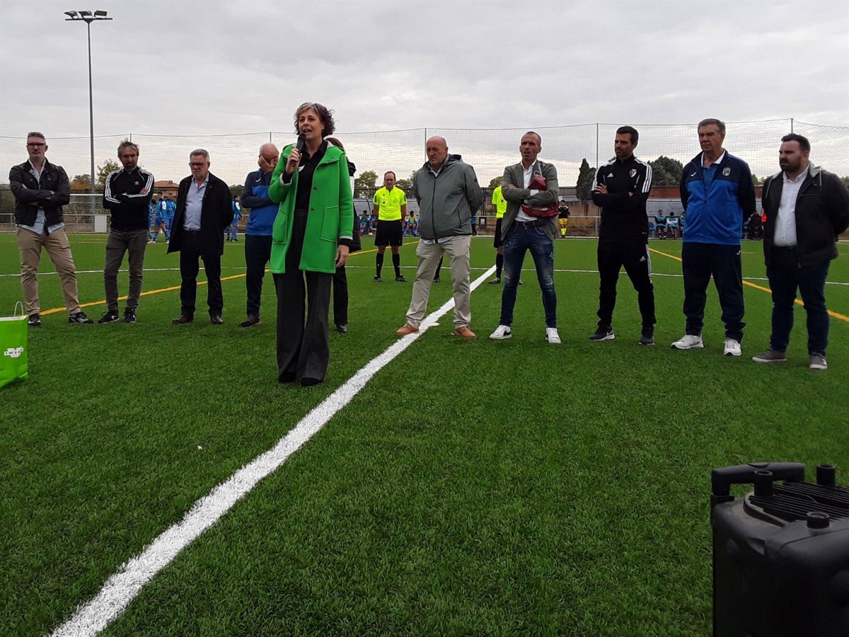 La consejera de Cultura y Deporte del Gobierno foral, Rebeca Esnaola, ha asistido este miércoles en Mendavia a la inauguración del nuevo campo de fútbol de hierba artificial tras las obras de renovación de la instalación que han tenido un coste de 435.000 euros, de los que el Gobierno de Navarra ha aportado 150.000.