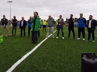 La consejera de Cultura y Deporte, Rebeca Esnaola, esta mañana en la inauguración del nuevo campo de fútbol de hierba artificial de Mendavia. - GOBIERNO DE NAVARRA