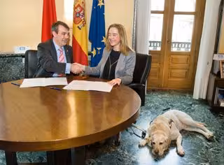 El vicepresidente primero del Gobierno de Navarra, Javier Caballero, y la delegada de la ONCE en Navarra, Matilde Gómez, han firmado este jueves en el Palacio de Navarra un acuerdo de colaboración para hacer posible el voto accesible para discapacitados visuales, mediante el sistema braille, y para darlo a conocer, de modo que esta vía pueda ser utilizada por el mayor número de personas que lo deseen en las próximas elecciones al Parlamento de Navarra, en condiciones de seguridad, accesibilidad, confidencialidad y fiabilidad.