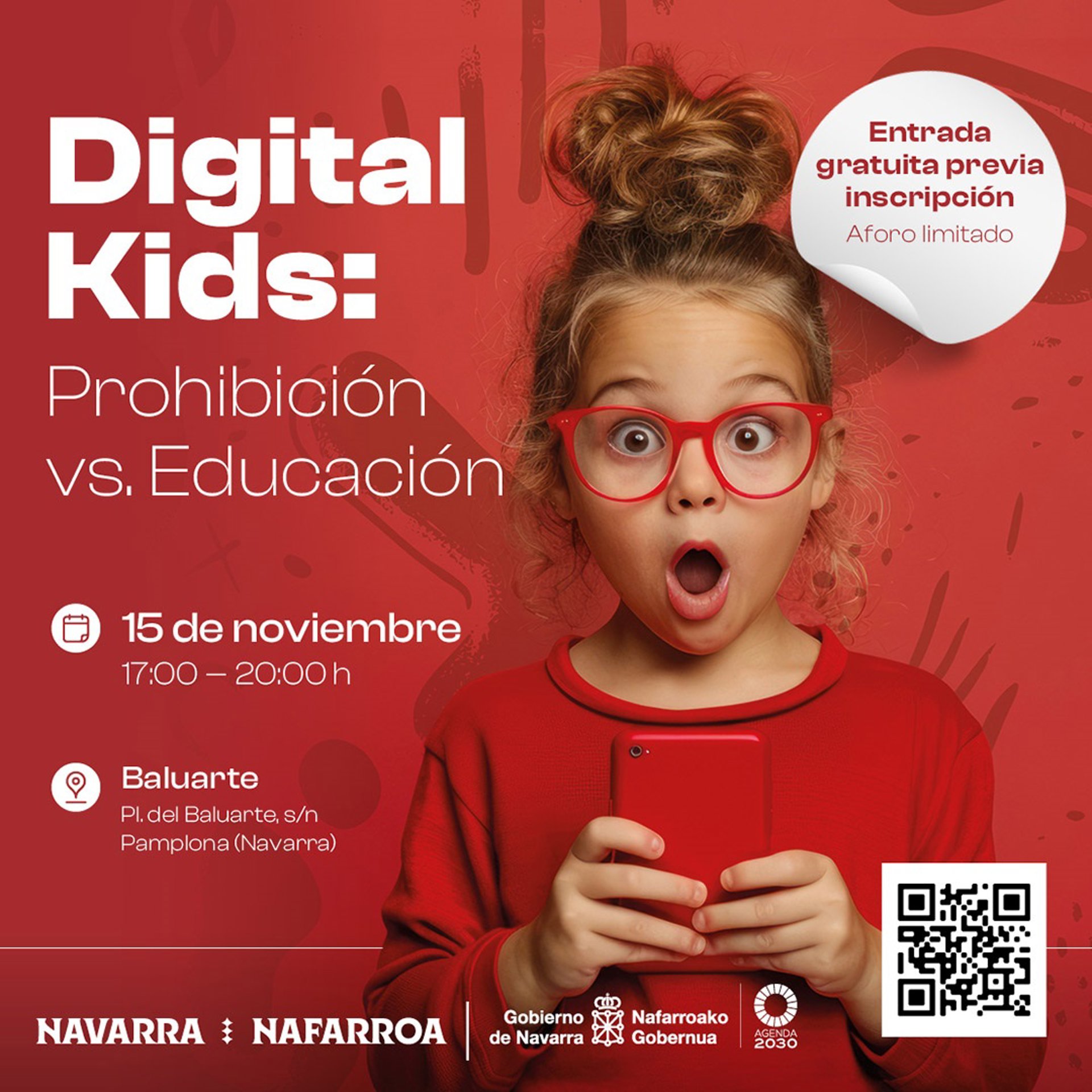 El Gobierno de Navarra celebrará el próximo 15 de noviembre la jornada 'Digital Kids: Prohibición vs. Educación', concebida como un punto de encuentro para que familias y especialistas puedan debatir sobre el impacto del uso de pantallas y dispositivos móviles entre la infancia y la adolescencia, así como conocer estrategias y herramientas para afrontar una educación digital más consciente y segura.