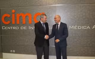 Francisco Errasti, director general de la Fundación para la Investigación Médica Aplicada, titular del CIMA, y Javier Romero, director general del Grupo Amma, han firmado en Pamplona un convenio de colaboración entre ambas entidades, con una vigencia inicial de tres años.