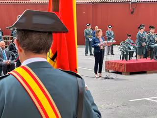 La Guardia Civil de Navarra ha celebrado este lunes en el acuartelamiento de Pamplona un acto militar con motivo del 180º aniversario de la fundación del cuerpo. En él, han participado guardias civiles de las diferentes escalas y diferentes autoridades políticas y militares de Navarra, entre ellas, la delegada del Gobierno en Navarra, Alicia Echeverría. También han asistido familiares de víctimas del terrorismo así como veteranos de la Guardia Civil.