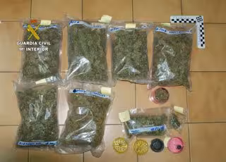 Los agentes hallaron una mochila con cuatro bolsas de marihuana de 100 gramos cada una. En otra parte del vehículo encontraron otras dos bolsas de 100 gramos cada una y una bolsa pequeña con 25 gramos de marihuana. También fueron hallados 850 euros en billetes de 50 y dos navajas.
