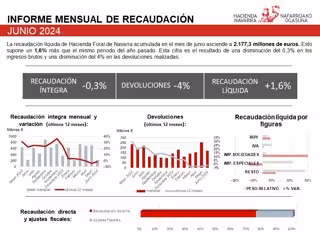 Hacienda Foral alcanzó en junio los 2.177 millones de recaudación, un 1,6% más. - GOBIERNO DE NAVARRA