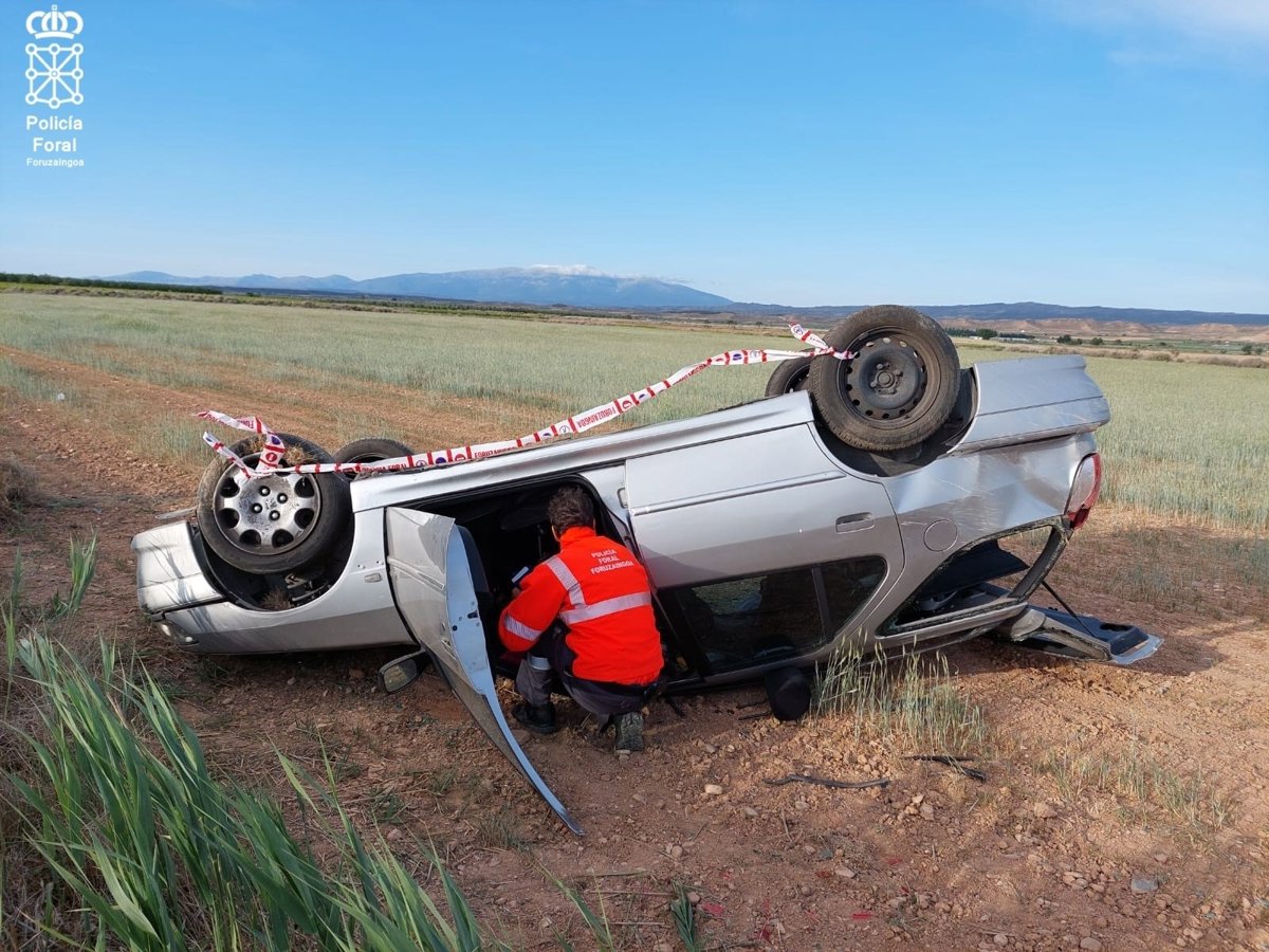 Una persona ha resultado herida de levedad este miércoles en Cascante tras sufrir un accidente vial consistente en una salida de vía con vuelco.