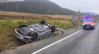 El suceso ha tenido lugar sobre las 12 horas en el kilómetro 11,4 de la carretera N-240-A, donde dos vehículos han colisionado y uno de ellos ha volcado. Como consecuencia del impacto, una persona ha resultado herida y trasladada al Hospital Universitario de Navarra.