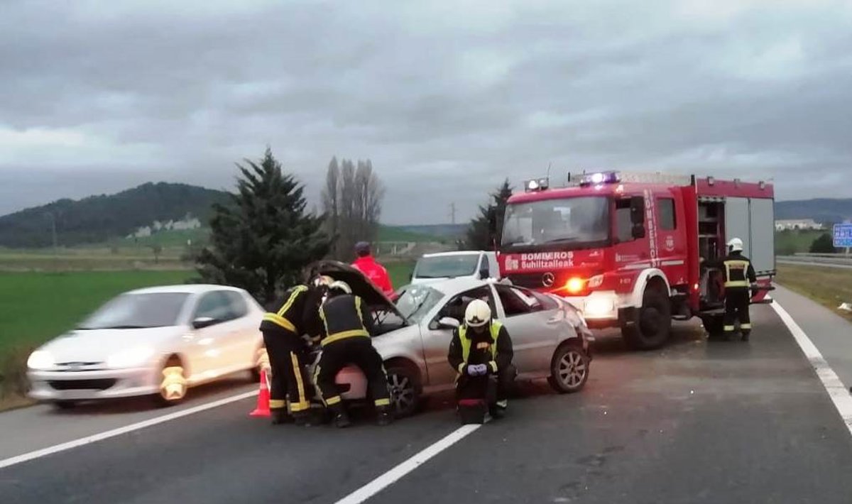 El carril izquierdo de la autopista ha quedado cortado sentido sur. Han acudido al lugar patrullas de Policía Foral, bomberos y ambulancia.
