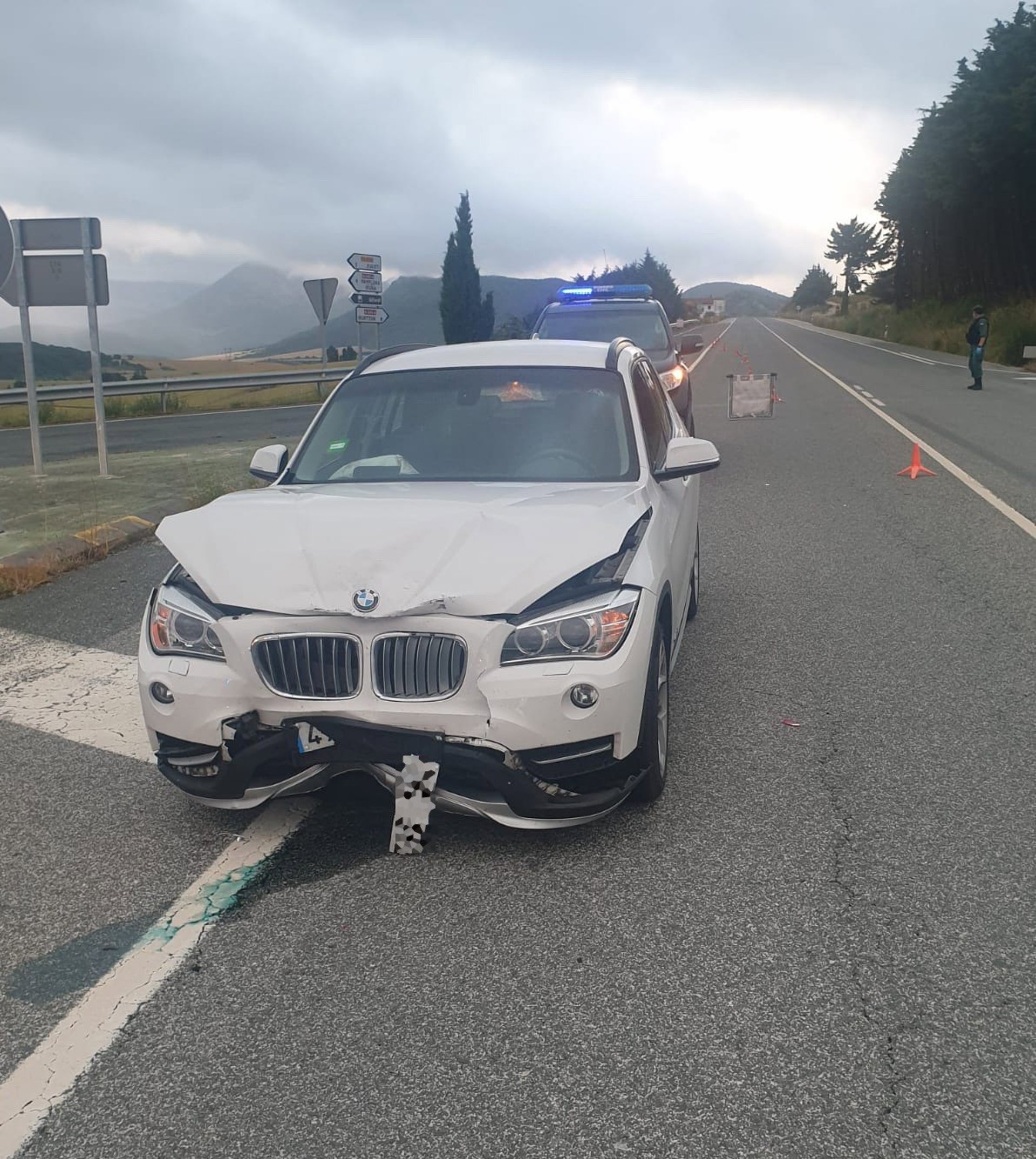 Accidente en la carretera N-240-A, en Iza, donde un joven de 27 años ha resultado herido leve. - GUARDIA CIVIL