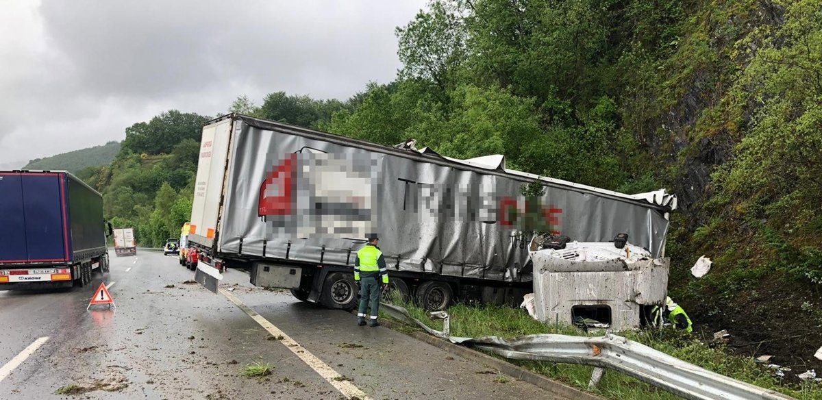 Herido leve el conductor de un camión tras una salida de vía en la A-15, en Gorriti. - GUARDIA CIVIL