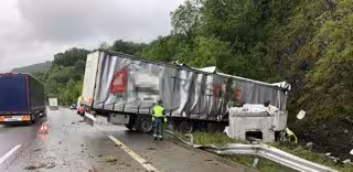 El conductor de un camión trailer articulado ha resultado herido leve este miércoles tras salirse de la vía su vehículo en la autovía A-15, en el término municipal de Gorriti.