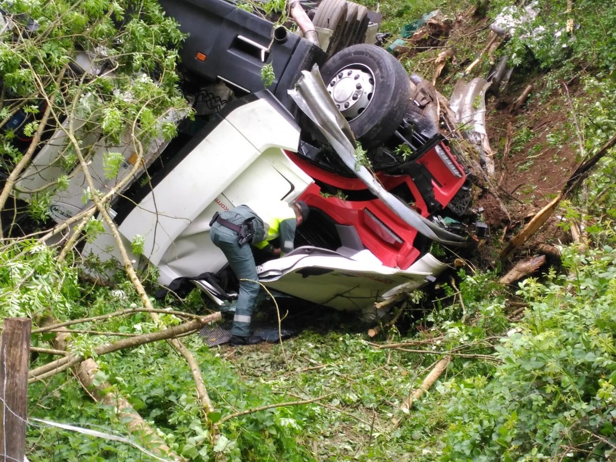 Camión volcado en la N-121-A - GUARDIA CIVIL