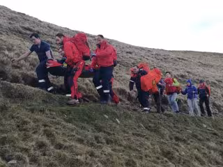 El montañero, guipuzcoano, tuvo que ser porteado por los bomberos y efectivos del GRT en una camilla y finalmente fue trasladado en la ambulancia al Hospital Donostia.