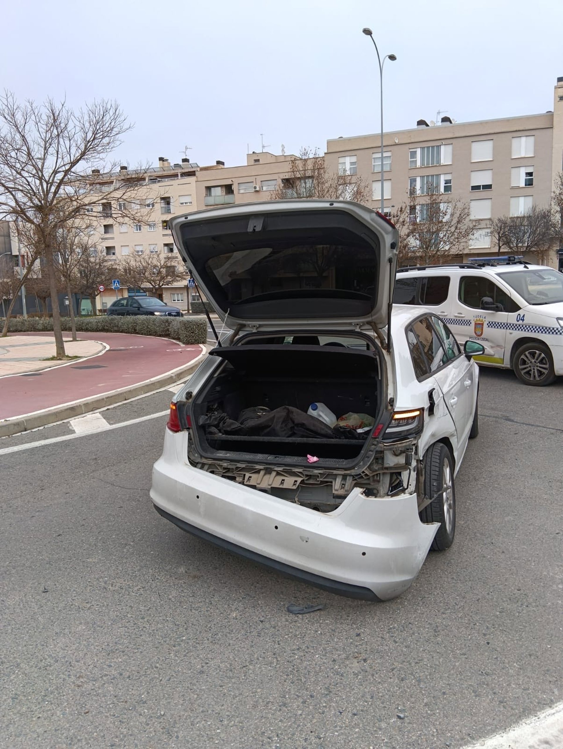 Imagen del vehículo tras ser embestido en la glorieta. - POLICÍA LOCAL DE TUDELA