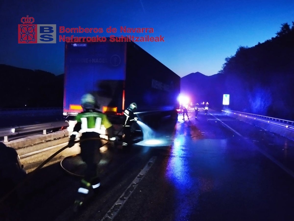 El suceso ha tenido lugar a las 5.53 horas en el kilómetro 136,6 de la A-15, donde han colisionado dos camiones por alcance, con salida de vía de uno de ellos. Los ocupantes se encontraban fuera de los vehículos a la llegada de las asistencias. Un varón de 47 años ha sufrido policontusiones y ha sido trasladado al Hospital Universitario Donostia en San Sebastián.