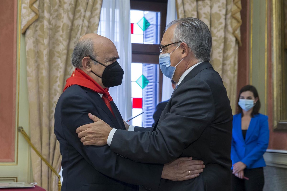 El alcalde de Pamplona, Enrique Maya, le ha impuesto ese pañuelo por "su contribución a la consolidación y proyección de la ciudad a través de la investigación histórica", coincidiendo precisamente con el Día del Privilegio de la Unión de los Tres Burgos.