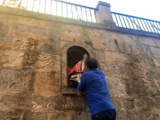 A partir de este miércoles el vano queda abierto para acoger la imagen original de San Fermín, una efigie que es propiedad de las peñas y que durante el año está depositada en un domicilio. La custodia la viuda de uno de cuatro los corredores que fueron promotores de la iniciativa en 1978, y que en principio situaba la imagen en un ventanal del desaparecido Hospital Militar (hoy edificio de Educación), para pasar finalmente a la actual hornacina, preparada para ello por el Ayuntamiento.