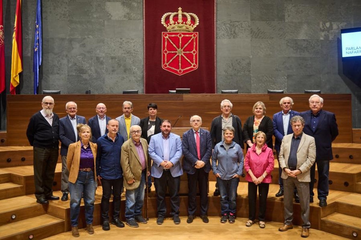 El presidente del Parlamento de Navarra, Unai Hualde, junto a los participantes en la sesión plenaria de Euskaltzaindia - PARLAMENTO DE NAVARRA