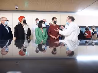 Al término de la visita, la ministra de Sanidad y la presidenta de Navarra, acompañadas por la consejera de Salud y directivos del departamento y del Servicio Navarro de Salud, han mantenido una reunión con la Dirección del Hospital Universitario de Navarra y con las jefaturas médicas y de enfermería del centro. Durante esta sesión se han detallado el conjunto de las inversiones que componen la renovación tecnológica, que tuvo su punto de partida el pasado mes de mayo, con la entrada en servicio de un quirófano híbrido de última generación para intervenciones del Servicio de Cirugía Vascular del HUN.