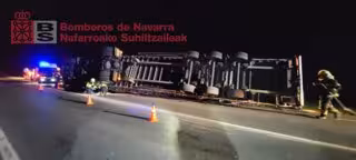Según han indicado desde Bomberos de Navarra en sus redes sociales, efectivos del parque de Cordovilla han taponado una posible fuga de gasoil y han limpiado la calzada. También han sido movilizados agentes de Policía Foral.