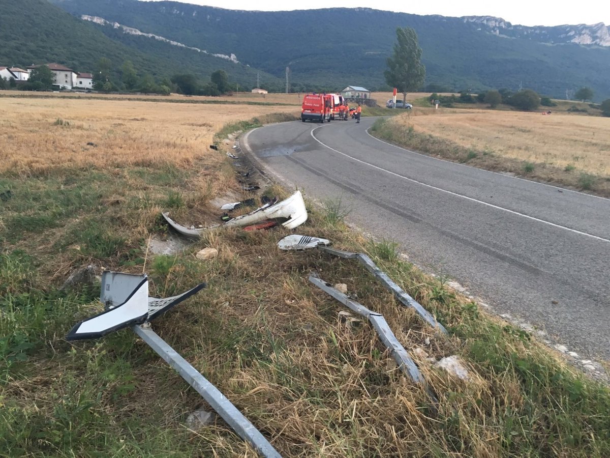 Mientras una patrulla de Seguridad Vial de la Policía Foral acudía al lugar, eran alertados nuevamente con motivo de un accidente en el kilómetro 3,400 de la NA-2410 (Barranca). Se trataba de una salida de vía con el resultado de daños materiales en el vehículo y en varios elementos de la vía.