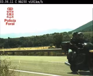 El pasado viernes, 3 de junio, un hombre de 38 años y nacionalidad francesa fue captado por un radar instalado por la Policía Foral en la carretera NA-150 (Pamplona-Aoiz-Lumbier), en el término de Lónguida, cuando circulaba con su motocicleta a 181 km/h, cuando la velocidad máxima autorizada en el lugar es de 90 km/h. Ha sido imputado por conducir un vehículo a motor a una velocidad superior a la establecida.
