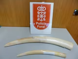 La Policía Foral ha imputado recientemente un delito contra la protección de la fauna a un vecino de Pamplona, de 52 años, que, presuntamente, intentaba vender dos colmillos de marfil, de 75 y 47 centímetros de longitud.