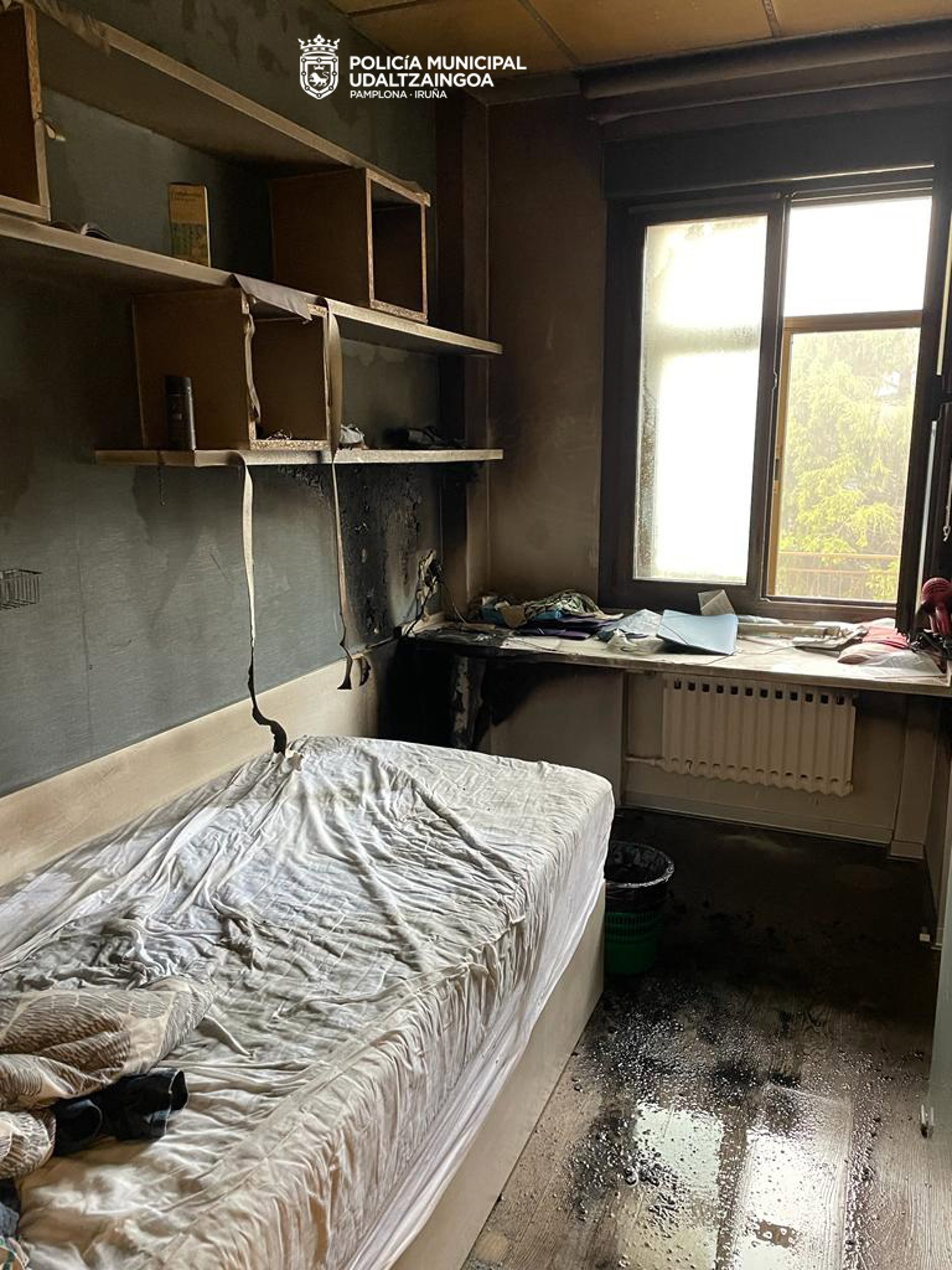 Imagen de la habitación dañada. - POLICÍA MUNICIPAL DE PAMPLONA