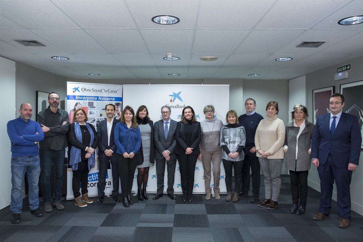 La Caixa acaba de renovar el acuerdo de colaboración para desarrollar el programa Incorpora con 7 entidades sociales de Navarra dedicadas a la integración laboral de personas con especiales dificultades para encontrar trabajo. El acto de firma de renovación del acuerdo se celebró este martes en Pamplona con la presencia de Marc Simón, subdirector general de la Fundación Bancaria La Caixa, y Ana Díez Fontana, directora territorial de CaixaBank en Navarra, así como representantes de las siete entidades sociales y técnicos de inserción laboral.
