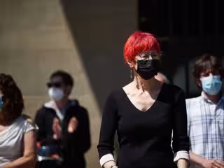 La consejera de Salud del Gobierno de Navarra, Santos Induráin, guarda un minuto de silencio en memoria por los fallecidos por el COVID-19 - Eduardo Sanz - Europa Press