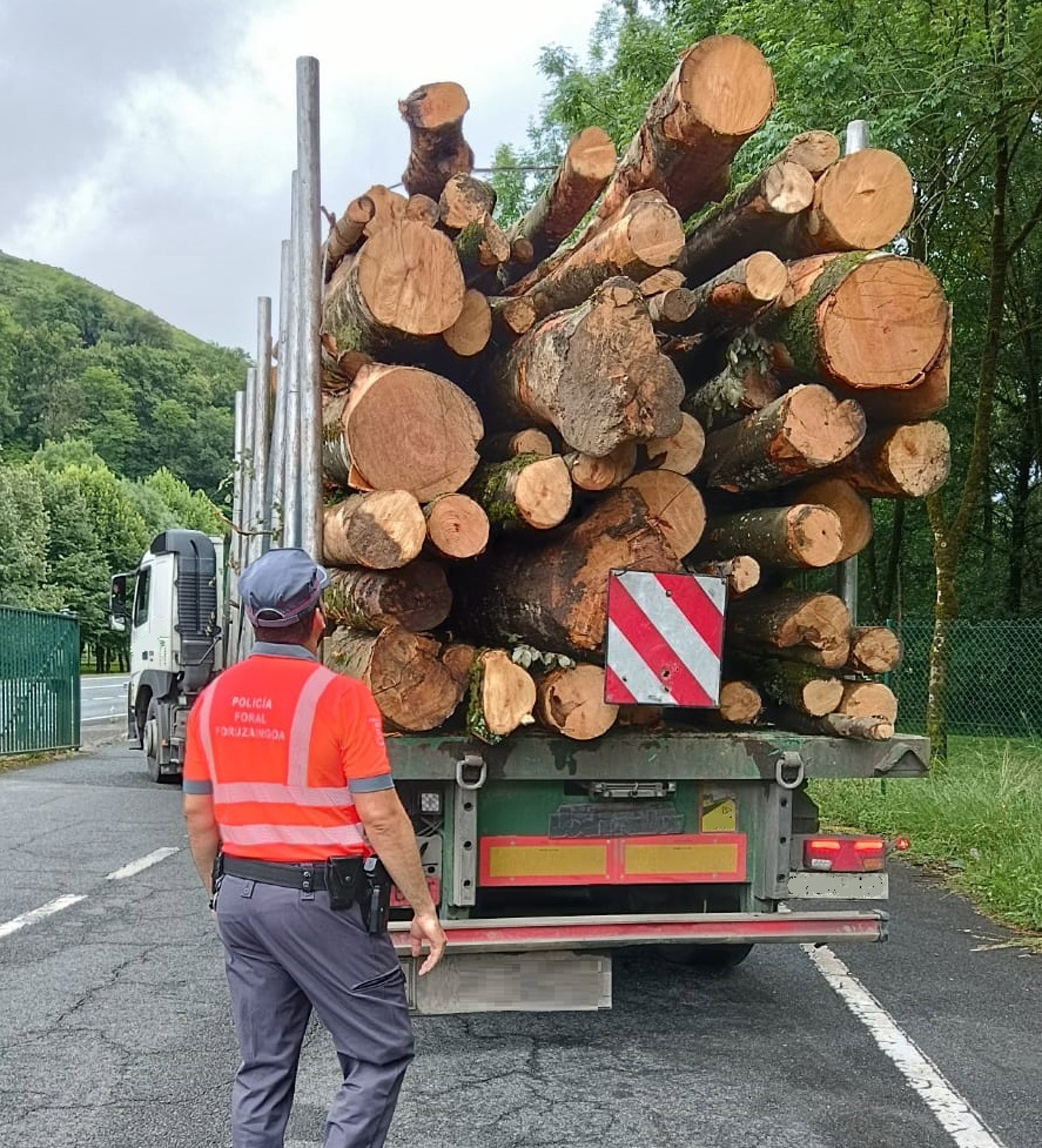La patrulla advirtió la infracción al comprobar que la carga sobresalía en altura, por lo que decidió controlar el vehículo en la báscula de Zozaia y pesarlo de paso, ha informado la Policía Foral en una nota.