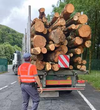 Agentes adscritos al Grupo de Transportes de Policía Foral han inmovilizado un camión que transportaba troncos por circular por la la carretear N-121-A con ocho toneladas de exceso, estando autorizado para 40.