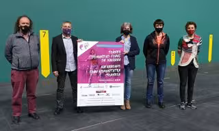 En la presentación del Torneo Comunidad Foral de Navarra ha participado la consejera de Cultura y Deporte, Rebeca Esnaola, que ha estado acompañada de Jon Oyarzun, de la Federación Navarra de Pelota Vasca, de las pelotaris Iera Agirre y Maite Ruiz de Larramendi, y de José Manuel Fuentes, de Emakume Master Cup.
