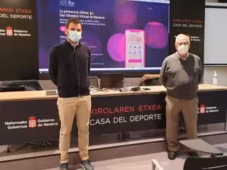 La aplicación para participar en la San Silvestre virtual ha sido presentada este viernes por el director gerente del Instituto Navarro del Deporte (IND), Miguel Pozueta, y el representante de RockTheSport, Alberto Zaro. Esta iniciativa organizada por el IND cuenta con la colaboración de las federaciones navarras de Atletismo, Ciclismo, Patinaje y Deportes Adaptados, y de las entidades locales de Navarra.