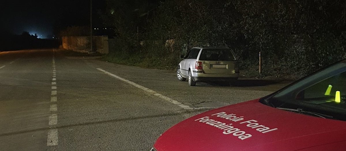 Una patrulla de Policía Foral junto al vehículo interceptado - POLICÍA FORAL